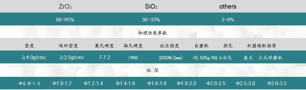 采用滾動成型工藝、通過高溫燒結制成,珠子內部硅酸鋯微粒均勻致密,密度和硬度適中,適合中低黏度物料的研磨和分散,可匹配大部分市面上的砂磨機。